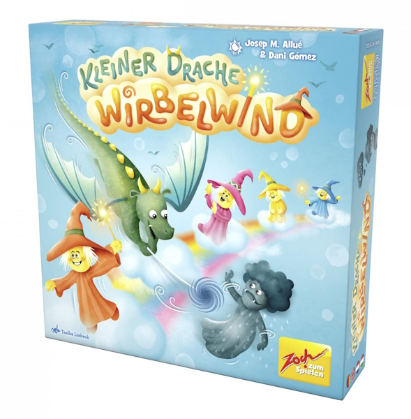 The fair's audience voted the cooperative skill game Kleiner Drache Wirbelwind by Josep M. Allué and Dani Gómez, published by Zoch, as the best preschool educational game: Children use a dragon to bowl rain goblins from a cloud bridge, which trains hand-eye coordination, fine motor skills, and teamwork. The game also scored points with its attractive wooden figures.