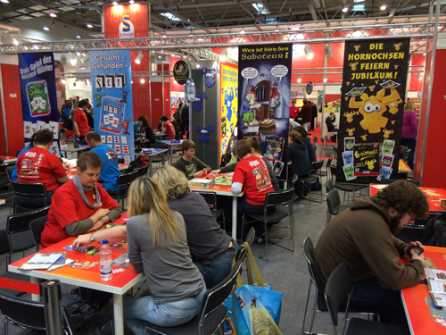 25.09.2015 - Am Stand von Amigo, in Essen zu finden bei H-103 in Halle 3, bietet der Verlag auf 500 m² Fläche unter anderem Spieledemos für Pokémon-Sammelkarten-Einsteiger und Kartenspielturniere an, darunter Pokémon-, My Little Pony- und Force of Will-Wettbewerbe. Im Freien können Besucher das aus "Schlag den Raab" bekannte Mölkky und Großversionen von Speed Cups sowie Honigbienchen antesten. An allen Tagen läuft eine "Amigo-Rallye", am Messesonntag (11.10.) abgerundet von einer Verlosung.