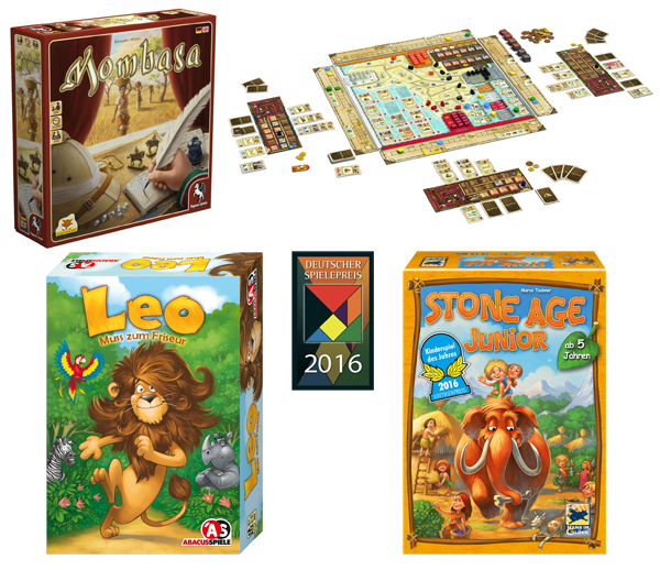 07.09.2016 - Mombasa von Alexander Pfister, erschienen bei eggertspiele / Pegasus, hat den Deutschen SpielePreis 2016 gewonnen. Dieser Publikumspreis wird, anders als beim „Spiel des Jahres“, nicht von einer Jury, sondern von den Spielern selbst gewählt, die ihre gewichteten Stimmen online oder per Post abgeben. Mombasa setzte sich mit seinem taktischen Ausbau afrikanischer Handelsrouten in den Top 10 gegen das zweitplatzierte Codenames von Vlaada Chvatil (Heidelberger / Czech Games) durch, das zuvor als „Spiel des Jahres“ prämiert worden war. Auf den Rängen drei bis zehn folgten T.I.M.E Stories von Manuel Rozoy (Space Cowboys), Pandemic Legacy von Matt Leacock und Rob Daviau (Z-Man Games), Mysterium von Oleksandr Nevskiy und Oleg Sidorenko (Libellud), Karuba von Rüdiger Dorn (Haba), das „Kennerspiel des Jahres“ Isle of Skye von Andreas Pelikan und wieder Alexander Pfister (Lookout), Imhotep von Phil Walker-Harding (Kosmos), 7 Wonders Duel von Bruno Cathala und Antoine Bauza (Repos) sowie Nippon von Nuno Bizarro Sentiero und Paulo Soledade (What's Your Game).