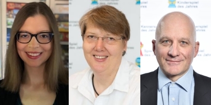 Nach einer krankheitsbedingten Pause schließt sich außerdem Cordula Dernbach (Mitte) als Beirätin wieder der Kinderspiel-Jury an. Die Aschaffenburgerin rezensiert neben ihrer Tätigkeit als Erziehungsberaterin freiberuflich Spiele und Bildungsmedien u.a. für die Deutsche Presse-Agentur und die Computer-Fachzeitschrift "c't".