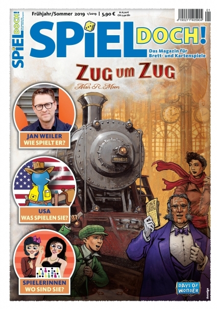 14.03.2019 - Rechtzeitig vor der Messe SPIEL DOCH! in Duisburg ist auch die Zeitschrift SPIEL DOCH! 1/2019 fertig geworden und kann ab sofort im spielbox-Webshop bestellt werden. Katrin Reil ist darin der Frage nachgegangen, warum die Spieleszene hauptsächlich aus Männern besteht. SPIEL DOCH! hält dagegen mit z.B. dem Artikel "Wie arbeitet eigentlich eine Agentin", und auch die Story "Wie Jugendliche spielen - und was" ist von einer Frau geschrieben. Die Redaktion hat für diese Ausgabe mit dem bekannten Buchautor Jan Weiler gespielt, und außerdem lässt sich nachlesen, wie man denn in den USA spielt. Das genaue Inhaltsverzeichnis ist im Shop zu finden.