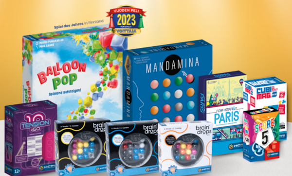 Other former HCM Kinzel product groups, such as toys, were not specifically mentioned in the announcement, but Markus Kinzel said that “the HCM Kinzel range will continue unchanged and be further developed under the TimeTEX umbrella.” The in-house development Braindrops by Anja Wrede and Christoph Cantzler, which HCM Kinzel was no longer able to deliver due to insolvency, is getting a new chance in the games segment: TimeTEX will soon be bringing the logic game to market after all. Other planned thinking and logic games, including those from the Braingame series, can now also be gradually realized thanks to the takeover.