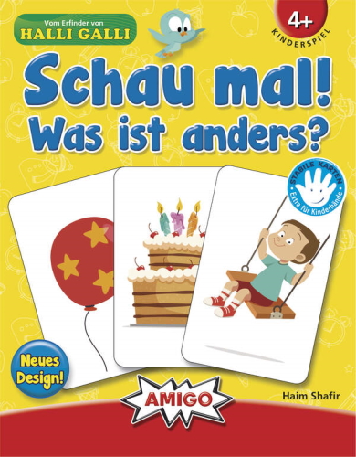 Schau mal! fordert die Konzentrationsfähigkeit von Kindern ab vier Jahren: Sie schließen die Augen, und schon verändern sich die Bilddetails auf den Karten, zum Beispiel die Anzahl der Kerzen auf einem Geburtstagskuchen, oder ein Apfel hat plötzlich kein Wurmloch mehr. Wer am schnellsten die Veränderungen erkennt, darf eine seiner Karten dazulegen in der Hoffnung, am Ende zuerst alle loszuwerden. (th)