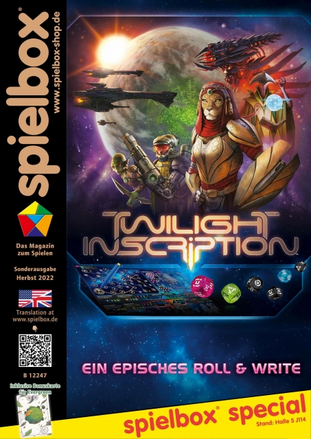 As every year prior to SPIEL in Essen, the spielbox Special, our special fair edition, has been published. It presents many new games (in addition to further entries in spielbox 5/22, English edition due on Oct. 5) and, of course, the popular checklist of new releases, where one can mark titles already encountered at the fair. As supplement, a bonus card for Hjalmar Hach's Evergreen by Horrible Guild / HeidelBÄR Games is included. The digital special can be downloaded free of charge here, with an English translation following at the end of this month. The printed version is available free of charge at the spielbox booth in Hall 5 J114 or (for €1.30 plus shipping) in our store. All subscribers of the German spielbox receive it together with issue 5. Pleasant reading!