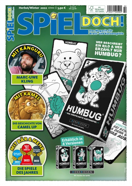 In the just published issue 2/22 of our spielbox sister magazine SPIEL DOCH!, beginners, casual players, families and all other game fans find the current "Spiel des Jahres" winners along with an interview with Randy Flynn, designer of this year's "Spiel des Jahres", Cascadia. In a rare interview, we also have bestselling author Marc-Uwe Kling ("Die Känguru-Chroniken"), who is not only a comedian and songwriter, but also directs movies ("Die Känguru-Verschwörung") and designs board games (Voll auf die 18). Other topics in this issue include the story of Steffen Bogen's Camel Up ("Spiel des Jahres" 2014), the best games with animals and of course numerous reviews such as Top Ten, Mille Fiori, Libertalia, Savannah Park or Mit Quacks & Co. nach Quedlinburg. You can order SPIEL DOCH! (German language only) in our store.