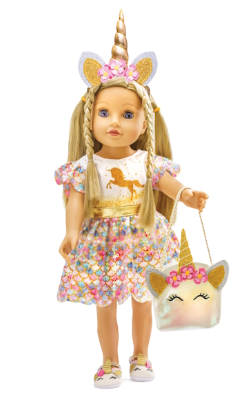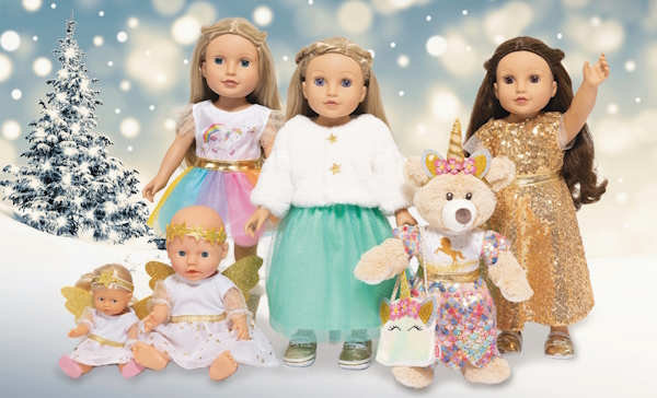 Die schönsten Kleider für geliebte Puppen und Plüschtiere kommen von Heless: Sie glitzern mit den Augen der Puppeneltern um die Wette und passen ganz vorzüglich in die Weihnachtszeit. Vom schimmernden Einhorn-Kleid „Goldy“ mit passenden Accessoires übers festliche Paillettenkleid „Goldstar“ bis hin zur kuscheligen Plüschjacke „Yuki“ mit funkelndem Tüllrock bietet die aktuelle Kollektion für jeden Geschmack passende Outfits. Neben eleganten Gewändern für Mädels ist natürlich auch süße Kleidung für Puppen- und Kuscheltier-Jungs dabei, darunter etwa ein Eisbär-Strickpulli mit Jeans oder ein gemütlicher Pyjama im Wal-Design.