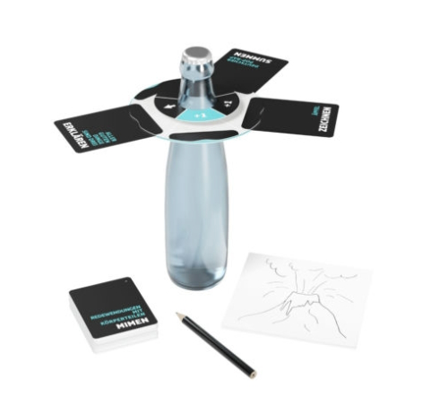 It'll probably be a while before the products reach the shops, but Asmodee has already named the selection of titles. The quiz Bezzerwizzer, the role-playing game The Werewolves of Miller's Hollow and the reaction game Taco Cat Goat Cheese Pizza (standard as well as a junior version) will be released as "Games to Go" variants. The communicative guessing game Hint Pocket transforms bottles into card holders, particularly recommending itself for playing after a meal. In addition, the tactical card games Klink and Food Truck are being launched for on the go. Meister Coup rewards the most cunning deceptions, while the card game Im Namen des Volkes: Die tödlichen Goldfische is all about politics.