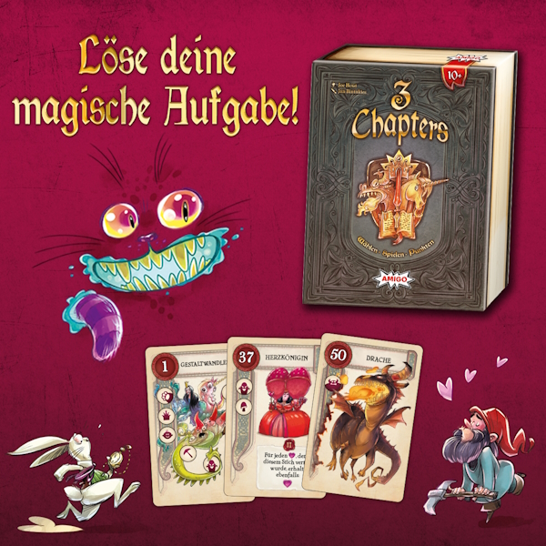 The fairy tale book from 3 Chapters (€14.99), written by Joe Hout, is similarly mystical: in three chapters, the goal is to win tricks with fairy tale characters and score points by cleverly combining cards.