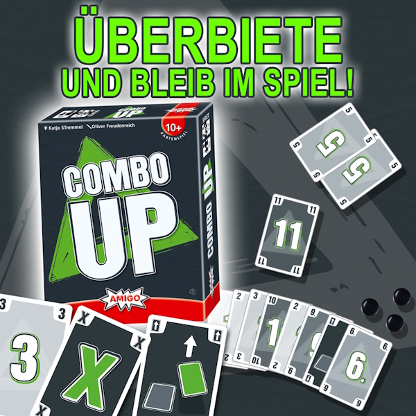 Als überarbeitete Neuauflage des Kartenspiels Krass Kariert geht Combo Up (ca. 10,99 €) von Katja Stremmel an den Start, das sich schnell verstehen lässt, aber strategische Finessen bietet, wenn man die Karten in die richtige Reihenfolge bringt.