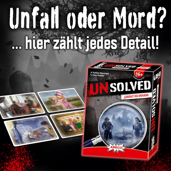 Den dritten Krimi-Fall der Unsolved-Reihe erzählt Unsolved – Landgut des Grauens (ca. 14,99 €) von Frederic Moyersoen: Nur durch Bilder muss hier bei gleich drei Todesfällen geklärt werden, ob sie ein Unfall waren oder Vorsatz im Spiel war. Drei Kapitel lassen sich in der Gruppe oder auch solo ermitteln.