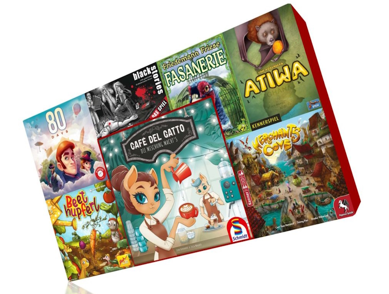 The non-profit association Österreichische Spiele-Akademie has named Café del Gatto by Lena Burkhardt and Julia Wagner, published by Schmidt Spiele, as this year's "Spiel der Spiele", the main winner of the Austrian games award. Contenders in this category are titles convincing the jury with fun and suitability for almost all target groups. The family game Café del Gatto revolves around baristas who have to prepare different coffee specialties, for which they purchase ingredients. Thomas Bareder from the Spiele-Akademie commented: "A highly accomplished family game that, in keeping with the game's motto, convinces with a good mix: a tactile and visual pleasure, plus an uncomplicated entry, a speedy playing rhythm and a concept that, not least thanks to almost maximum transparency, offers plenty of scope for tactical considerations without being too demanding."