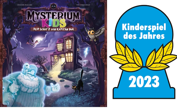 16.07.2023 - Knapp zwei Monate nach den Nominierungen wurden heute Abend in Berlin die Preisträger des Spiel, Kinder- und Kennerspiel des Jahres prämiert. Als Kinderspiel des Jahres zeichnete die Jury Mysterium Kids von Antonin Boccara und Yves Hirschfeld aus, veröffentlicht bei Libellud, Space Cow und Asmodee. Einzigartig ist bei dieser Kinderspiel-Variante von Mysterium, dass hier verschiedenste Objekte mit einem Tamburin imitiert werden, mal durch sanftes Streichen oder mal durch lautes Schlagen des Instruments. Auch die Autoren verschafften ihren Dankeswünschen auf der Bühne mit spontanem Tamburin-Einsatz Gehör. Die Jury kommentierte: "Das Tambourin fasziniert die Kinder sofort. Kombiniert mit der Herausforderung, passende Geräusche zu erzeugen und dem genauen Zuhören, entsteht eine einzigartige Atmosphäre. Wenn die Spieler:innen dann noch gemeinsam herausfinden, welcher der gesuchte Gegenstand war, ist die Freude groß. Mysterium Kids überzeugt mit einer spannenden Aufgabe und einzigartigem Spielmaterial."