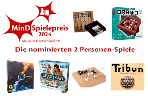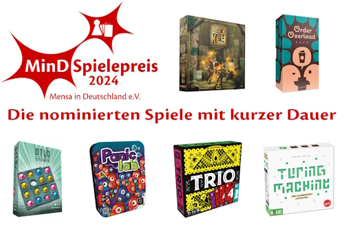 Eine Nische hat sich auch der MinD-Spielepreis der Hochbegabten-Organisation Mensa in Deutschland erobert, denn wählen dürfen ihn nur Menschen mit einem nachgewiesenen IQ von mindestens 130. Bis Jahresende können sie nun für ihre Favoriten unter jeweils sechs Nominierten in zwei Kategorien stimmen. Bei den Spielen mit kurzer Spieldauer und kurzem Regelwerk sind im Rennen: