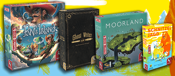 The Pegasus Spiele Gaming Days are running until December 17: Almost 200 game stores and clubs in Germany and other European countries are inviting players to try out three new family games and one expert game free of charge and without having to register in advance (titles may vary depending on language). Pan's Island by Marc Paquien brings two to five players ages eight and over to Neverland to take on the roles of Peter Pan, Tinker Bell, Wendy, Lily, John and Michael and find the "lost children" kidnapped by Captain Hook. Using visions, a ghost in Ghost Writer by Mary Flanagan and Max Seidmann tries to convey a secret word letter by letter to players guessing in teams.